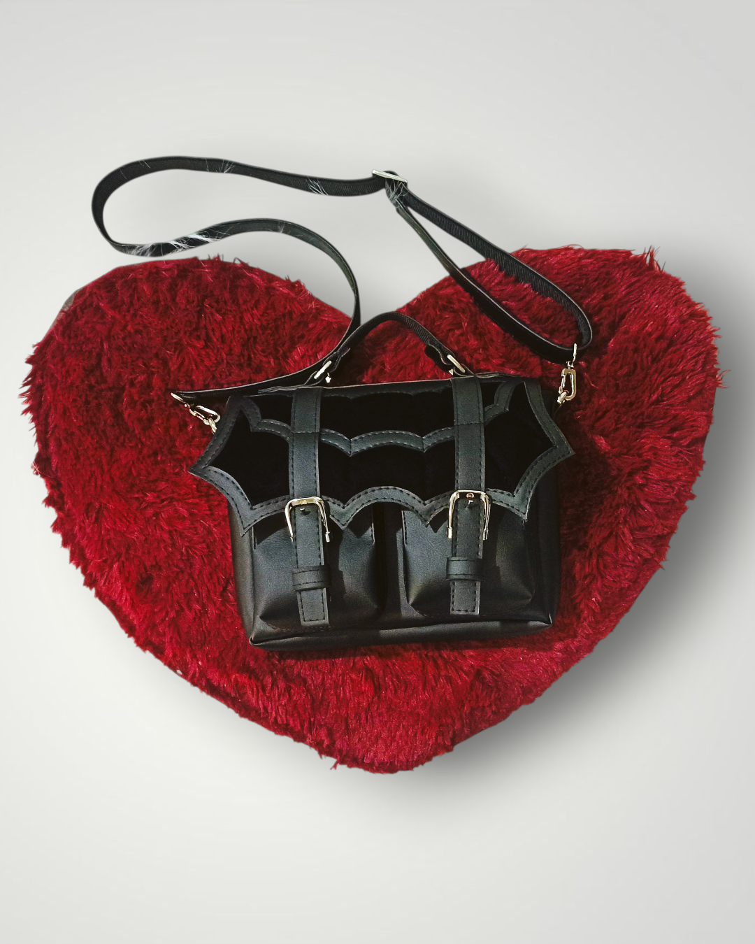 • Material: Cuero sintético y terciopelo negro